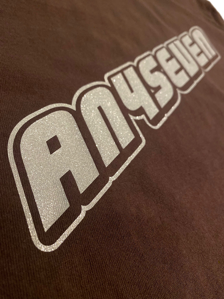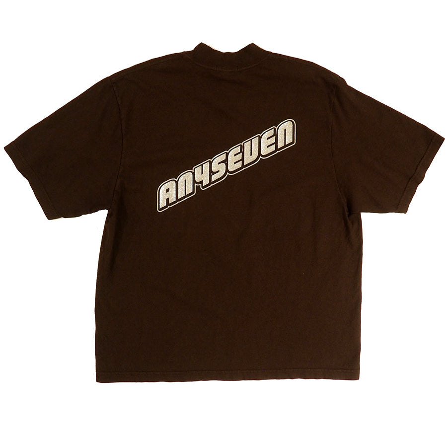 Short sleeve cotton mock-neck shirt. ANYSEVEN Lambo logo in metallic silver appliqué logo on back. ANY7 in metallic silver logo on left chest.