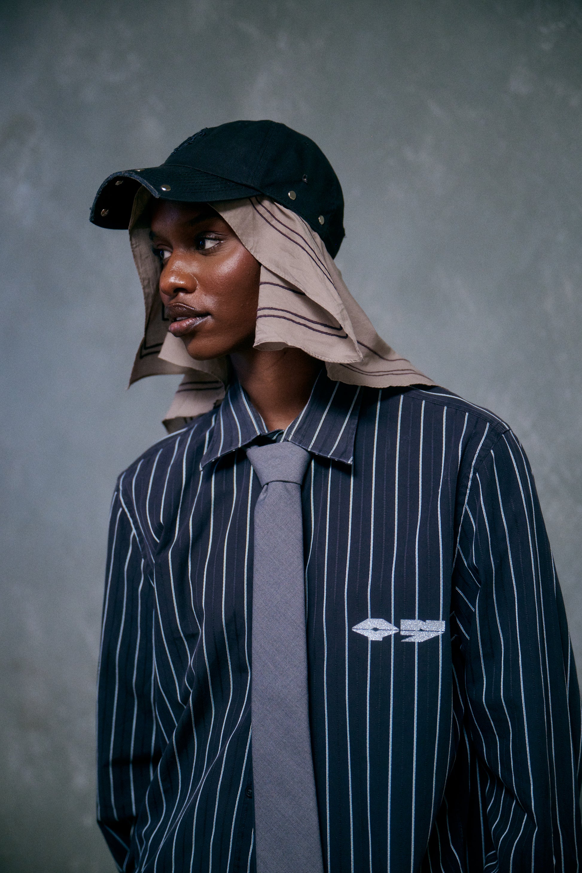 Black Dad hat with partial hand cut off brim. Metal studs on brim, side panels and top. 3D Embroidered Mets inspired A7 front logo. Back embroidered ANY7 logo. Adjustable back strap