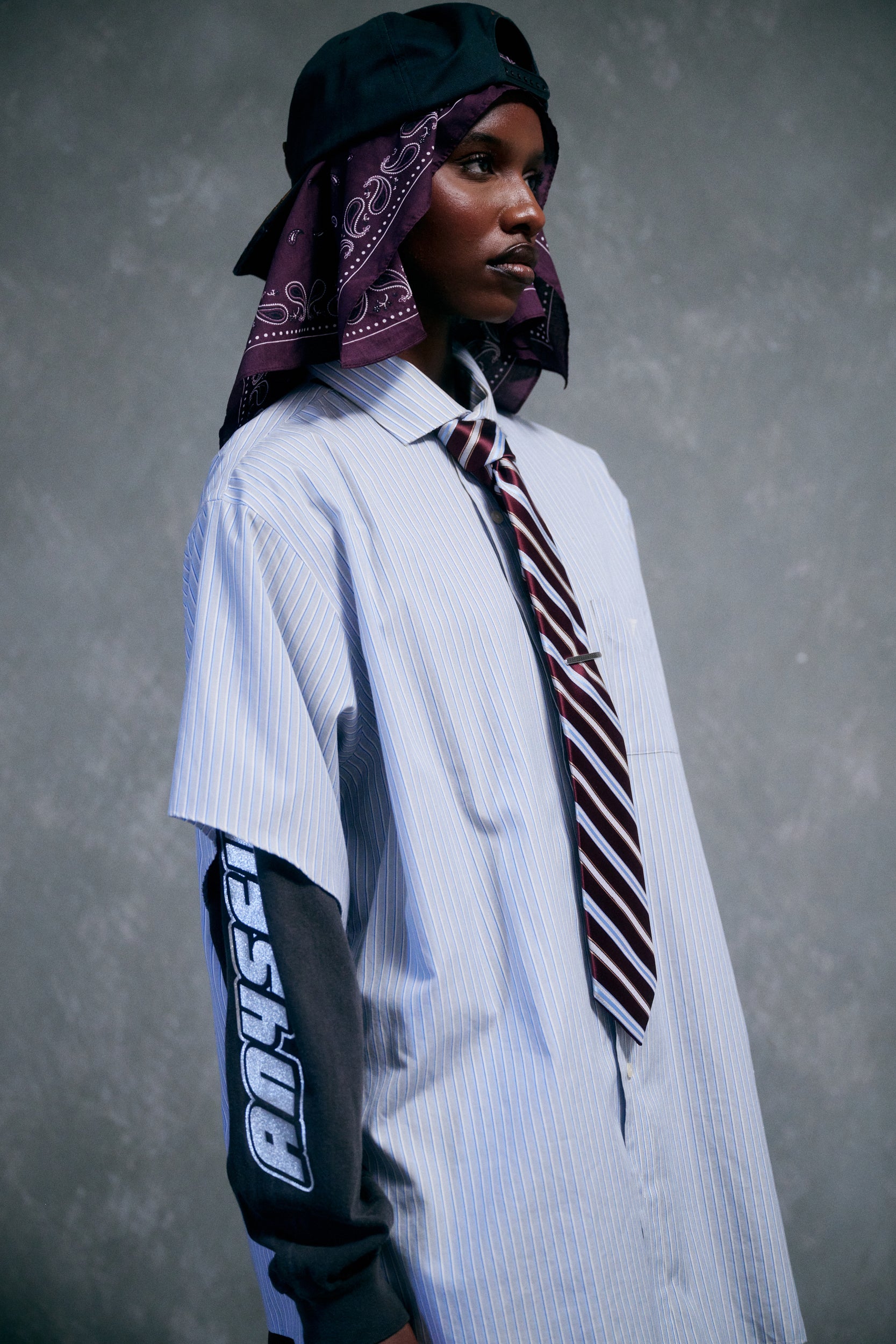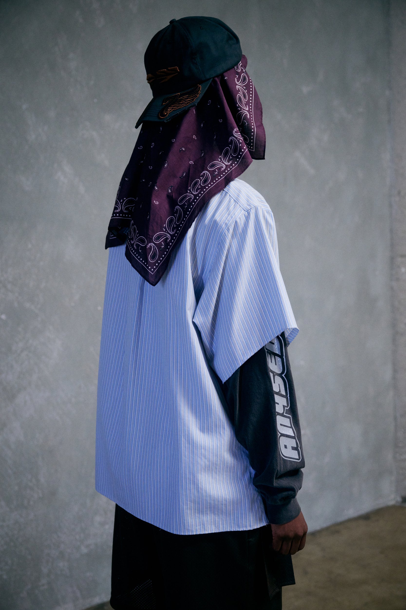 Oversized fitting Black 5 panel hat with hand cut angled cut off brim. Copper 3D Embroidered OVRLNDR ANY7 front logo. Bent brim. Copper 3D Embroidered 7 Wing Logos on top brim. Back Copper embroidered ANY7 logo. Oversized adjustable snapback